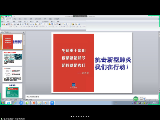为贯彻落实党中央关于疫情防控的决策部署,进一步做好疫情防控工作,引导广大学生科学认识和正确对待疫情,合理安排假期生活,增强班集体的凝聚力和向心力,坚定信心、共克时艰,近期,学院组织全院班集体开展了以“坚定信心,不负韶华,用实际行动担当起疫情防控的责任”为主题的网络主题班会活动。