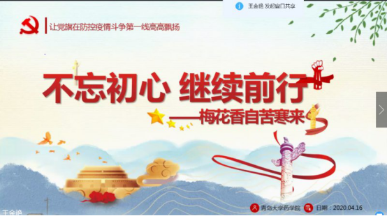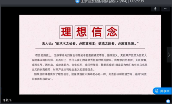 4月22日中午,台湾a片 学生党支部通过“钉钉”视频举办首届“学生党员讲党课”微党课大赛决赛。台湾a片 党委副书记李延霞、辅导员胡芳、林欢及全体学生党员、全体入党积极分子观摩比赛并现场评分。