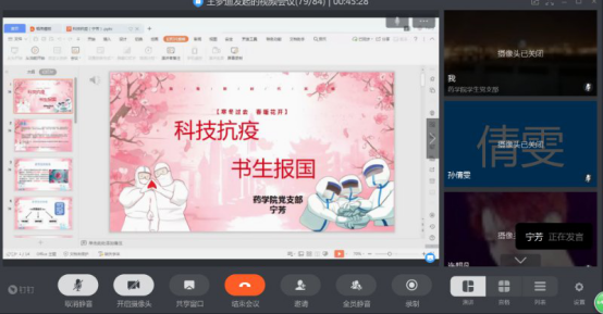 比赛中,初赛胜出的学生党员刘重阳、杨洪霞、程金倩、许超凡、王金艳、张凯杰、宁芳依次直播讲课。他们围绕“回望初心 诠释使命”、“光辉的历程--99年中国共产党党史”、“科技抗疫 书生报国”等主题,结合精心制作PPT课件,通过简洁精练的语言,聚焦党的理论知识的某个方面,图文并茂的分享展示了个人理论学习成果和思考认识。选手许超凡讲道,回望初心担使命就要始终不忘理想信念这一根本,始终不忘推动发展这一要务,始终不忘为民服务这一宗旨,始终不忘纪律规矩这一底线。程金倩发言道,只有了解历史的大事件,才能品味历史演变的内在规律、把握历史发展的趋向,进而从历史的玄机中找到发展之路。杨洪霞指出,哪有什么岁月静好,只不过是有人替你负重前行!疫情面前,家国一体。战“疫”在我,践行初心使命!