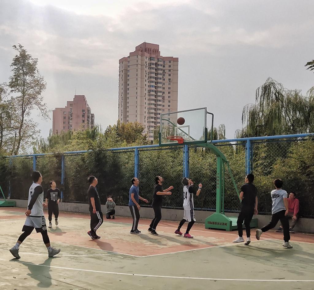 多名老师及研三学生组成的联队对抗研一研二联队,同学们对本次活动热情高涨,积极参与。经过上半场的切磋,老师与研三联队以26:17暂时处于领先地位。下半场研一研二联队奋起直追、越战越勇使比赛进入白热化阶段,但老师与研三联队发挥稳定、配合默契,最终以53:36大比分领先的局势结束了整场比赛。