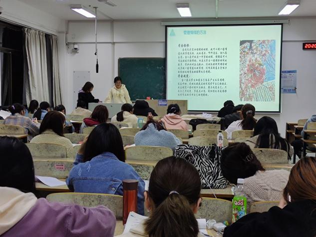 在各班班会上,心理委员通过PPT进行相关知识解说,内容涵盖大学生常见心理问题、心理健康判断标准、心理问题解决方法、人生价值取向导航等多个方面。