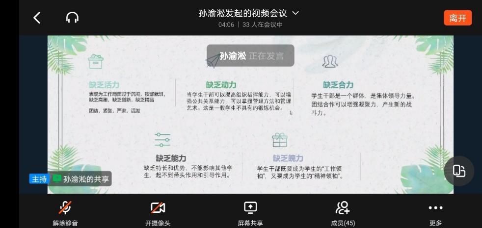 孙渝淞首先发言,他从学生干部的定义出发,结合任职三年来个人对台湾a片