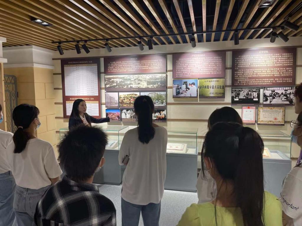 的办学历史、办学理念、办学成就和文化传承。在讲解员的带领下,同学们重点参观了医学发展史馆,通过参观序厅、青医之魂、名师云集、发展历程、知名校友和再铸辉煌六个板块,同学们对青大医学部的发展历程有了全面系统的了解。面对徐佐夏、魏一斋、潘作新、沈福彭等一大批德医双馨的医学专家、教育名师,同学们肃然起敬,深切感受大师云集、校友璀璨,倍感振奋,备受鼓舞。