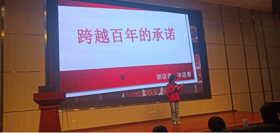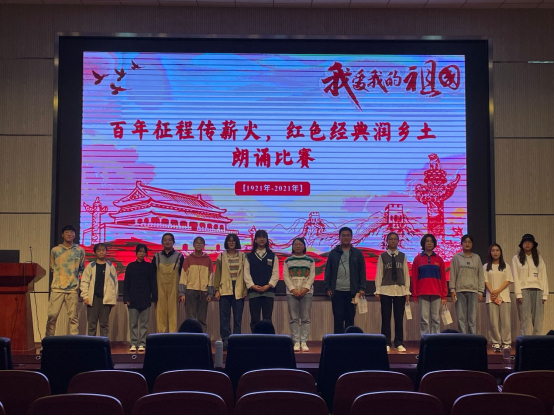 在浩园医学教育综合楼一楼学术报告厅举办“百年征程传薪火,红色经典润乡土”朗诵比赛,读书社全体成员参加活动。