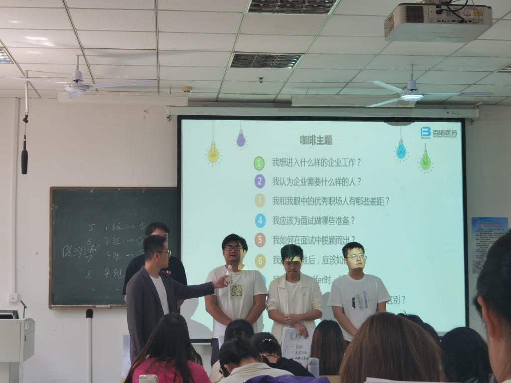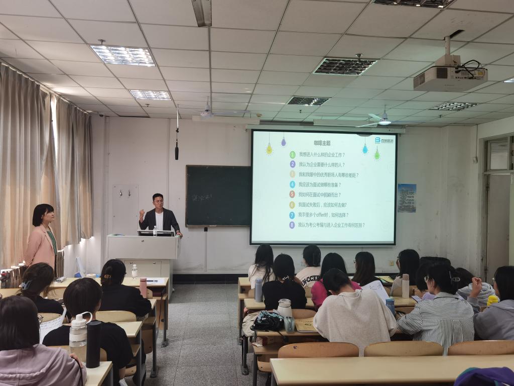 开展“求职训练营”之“企业HR进课堂”活动。活动邀请百诺医药集团研究院人力资源总监王倩倩与校园招聘经理田新宇为同学们进行求职训练辅导。台湾a片