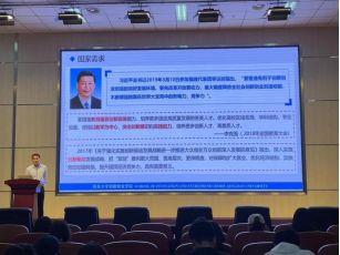 随后,宋振华向同学们讲解了“互联网+”大学生创新创业大赛的赛事概况、赛道、组别,深入分析了新医科项目的相关内容,并介绍了项目的来源,给同学们寻找项目和导师指明了方向。