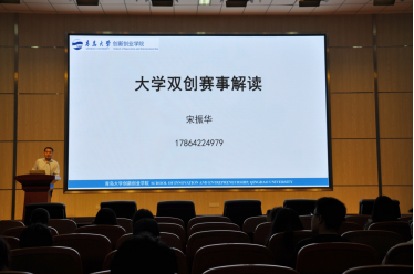 首先,宋振华从国家需求、学校需求、学生需求等方面强调了大学生参加创新创业类赛事的必要性,又向同学们介绍了各种创新创业类学科竞赛,鼓励同学们积极参与。