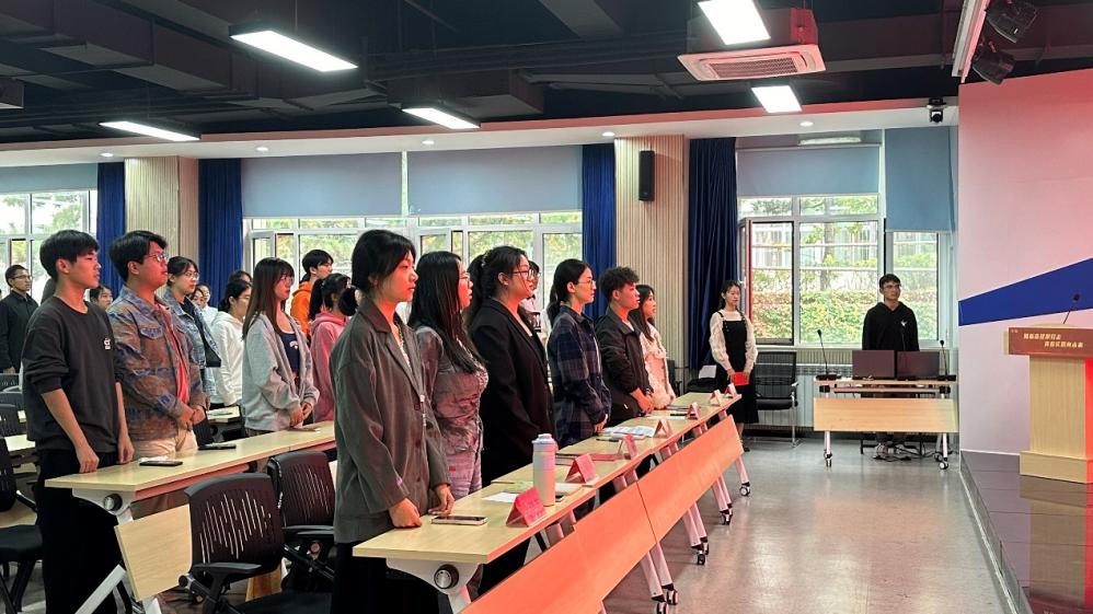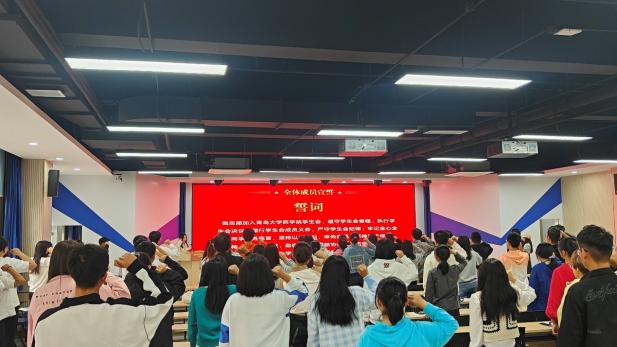 大会最后,由学生会新媒体中心主任刘畅同学带领第八届学生会全体成员宣读誓词。