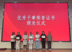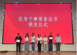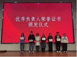 学生会代表为获奖同学颁发荣誉证书。过去一学期,优秀负责人与干事们恪尽职守、锐意进取,以高度的责任感与使命感圆满完成各项工作。希望获奖同学坚守初心、再创佳绩,以实干诠释优秀,以奋进开启新程。