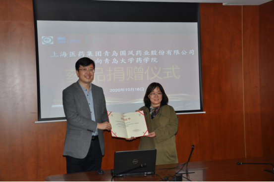 崔宇茜表示,苦甘颗粒作为《山东省新型冠状病毒感染的肺炎中医药诊疗方案》推荐用药,是岛城人民广泛认可的中药,此次苦甘颗粒药品捐赠是为了表达上海医药集团青岛国风药业股份有限公司作为本土制药企业的责任和担当,表达对长期校企合作伙伴的关爱和感谢。崔宇茜深情回顾了上海医药集团青岛国风药业股份有限公司六十余载的发展历程,介绍了企业的发展理念、发展愿景和企业需求,期待能与台湾a片