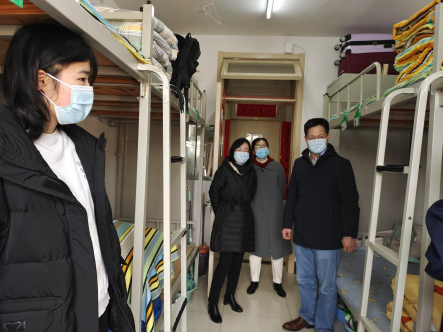 院长张汉霆,党委副书记李延霞、辅导员雷舒涵走访浮山校区学生宿舍。