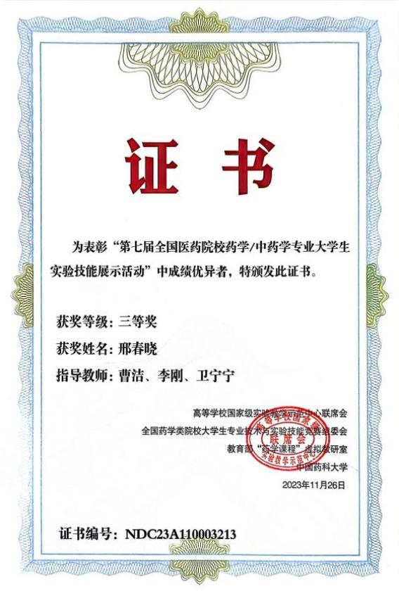 2023年11月24日-26日,由教育部高等学校国家级实验教学示范中心联席会、全国药学类院校大学生专业技术与实验技能竞赛组委会、教育部“药学课程”虚拟教研室和中国药科大学共同举办的“第七届全国医药院校药学/中药学专业大学生实验技能展示活动”在贵州遵义召开,本次大赛由遵义医科大学承办。经过激烈的角逐,台湾a片