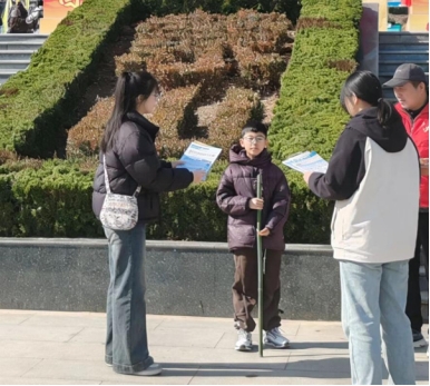 2023级本科生王晨在临沂云蒙山向来往游客发放宣传单、讲解用药知识。他提醒游客注意药品有效期、规范储存、避免药物混用,并特别关注老年人与儿童的用药禁忌。一份传单、一句提醒,看似微小,却能帮助大家避开用药风险。在青山绿水间传递健康知识,王晨不仅收获了游客的认可,也深刻体会到志愿服务的意义。