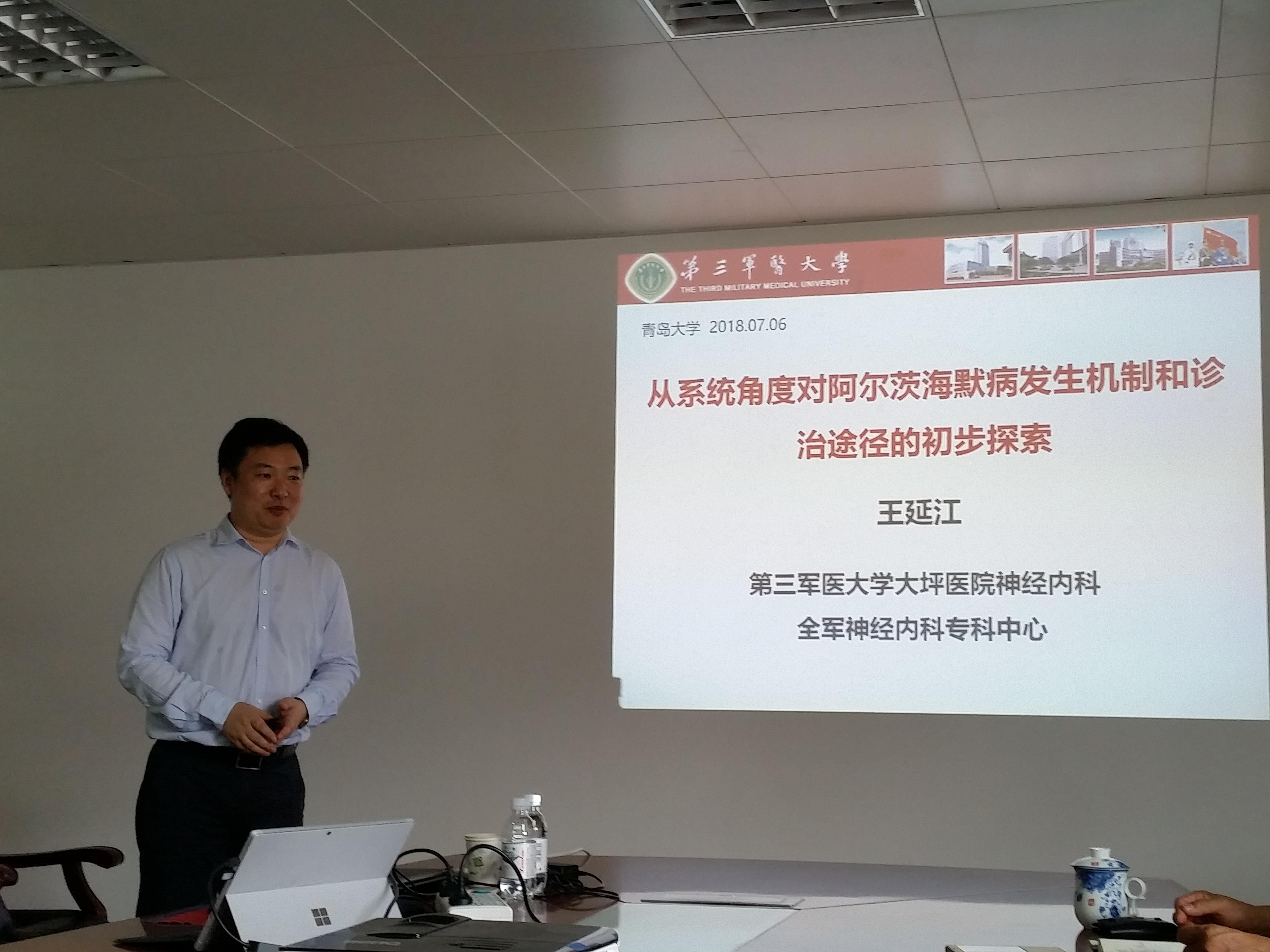 7月6日,第三军医大学大坪医院神经内科科主任、教育部“长江学者”特聘教授王延江教授来台湾a片 进行学术交流。学术报告会在台湾a片 会议室举行,台湾a片 院长王克威教授主持报告会。