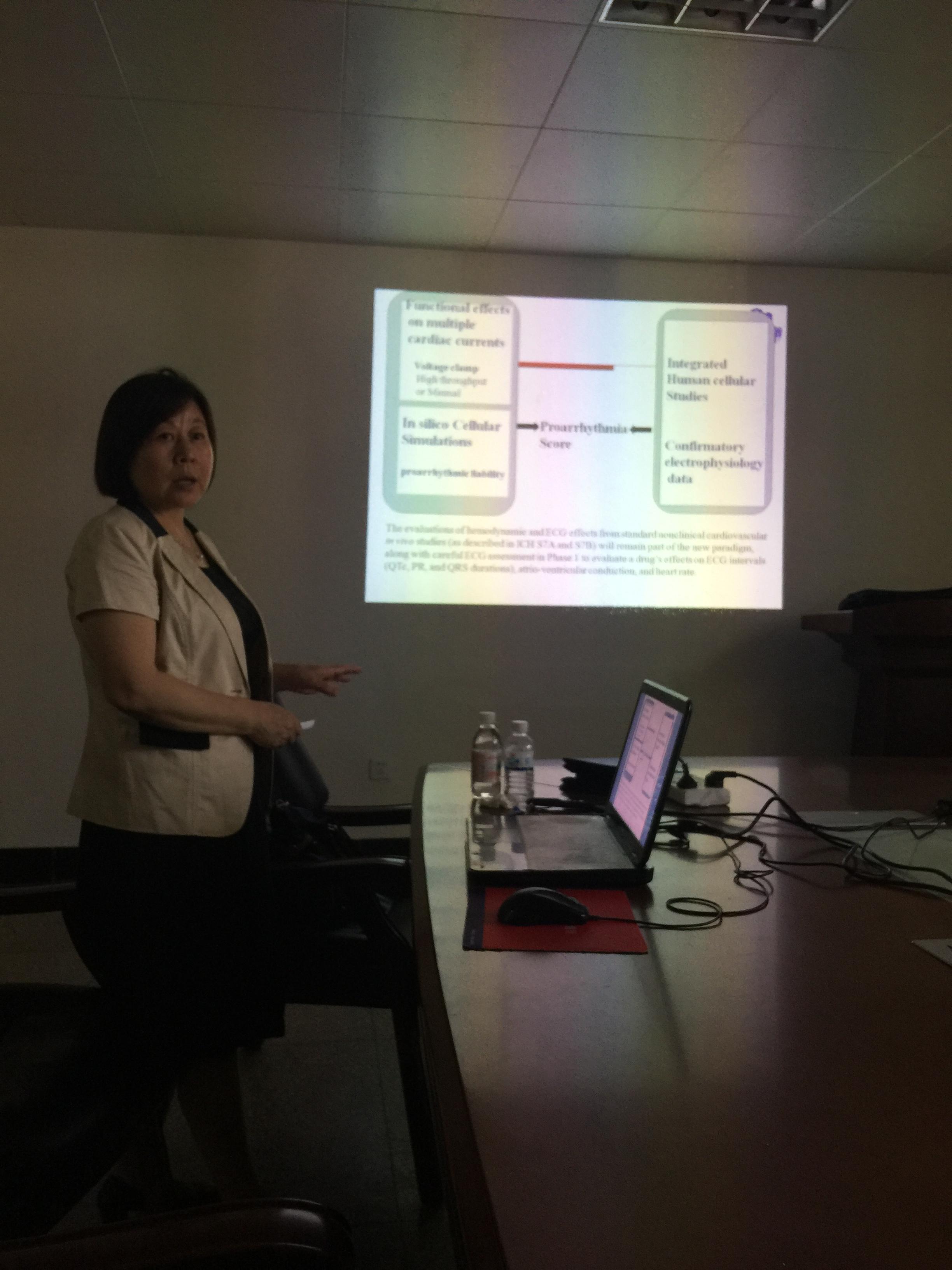 6月14日河北医科大学“新药安全评价研究中心”主任许彦芳教授来台湾a片 进行学术交流,并于当日下午给台湾a片 广大师生做了激情洋溢的学术报告,报告由台湾a片 王克威院长主持。报告中详细讲述了“药物潜在致心律失常风险评估策略、安全评价在新药研发中的重要意义、及评价实验中应注意的事项”。台湾a片 师生根据个人研究领域及兴趣爱好,向许教授进行现场请教与咨询。报告会后,在王院长的带领下参观了台湾a片 实验室,并与朱玮等老师进行了座谈,商谈学术研究合作交流事宜。