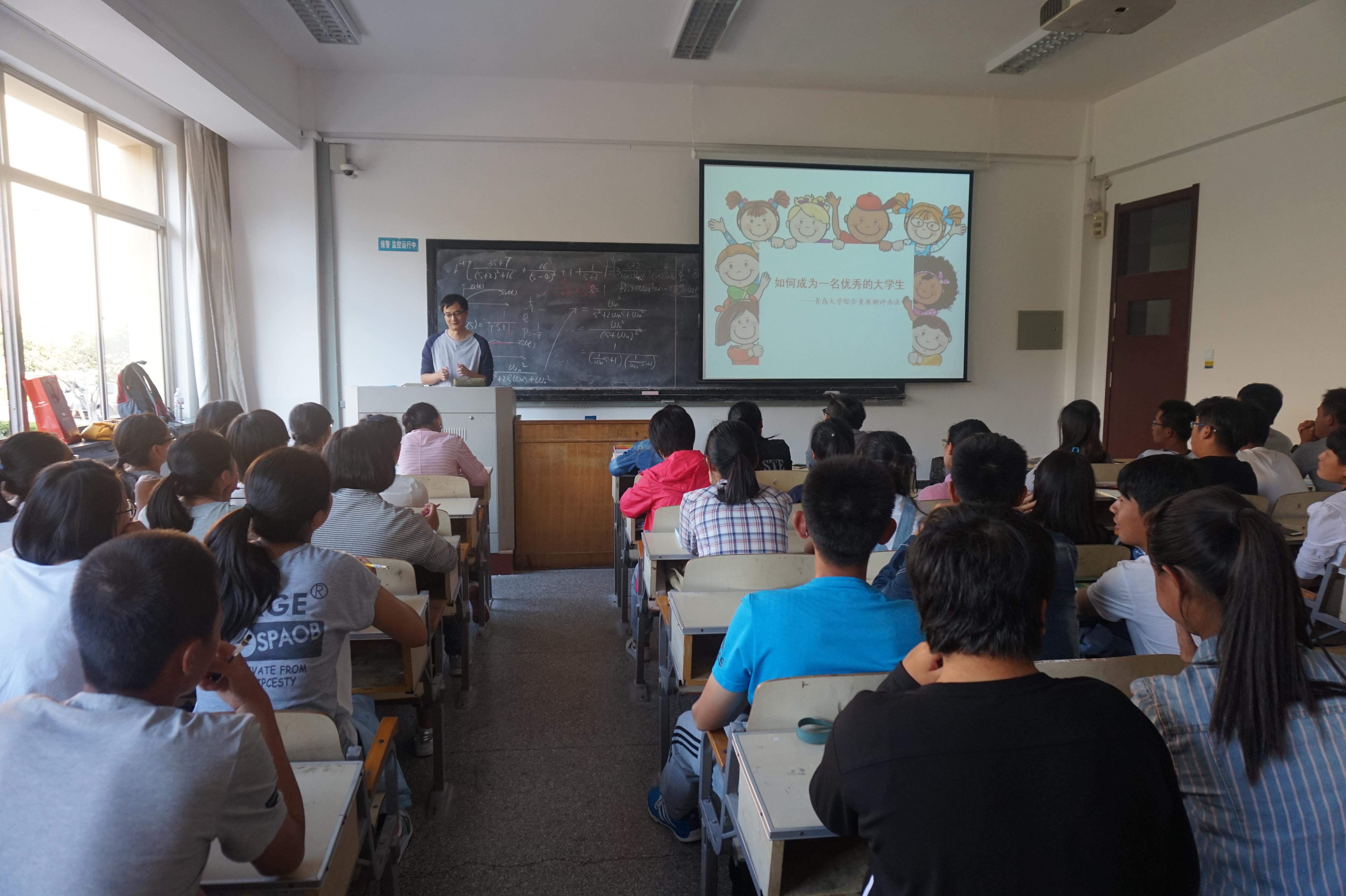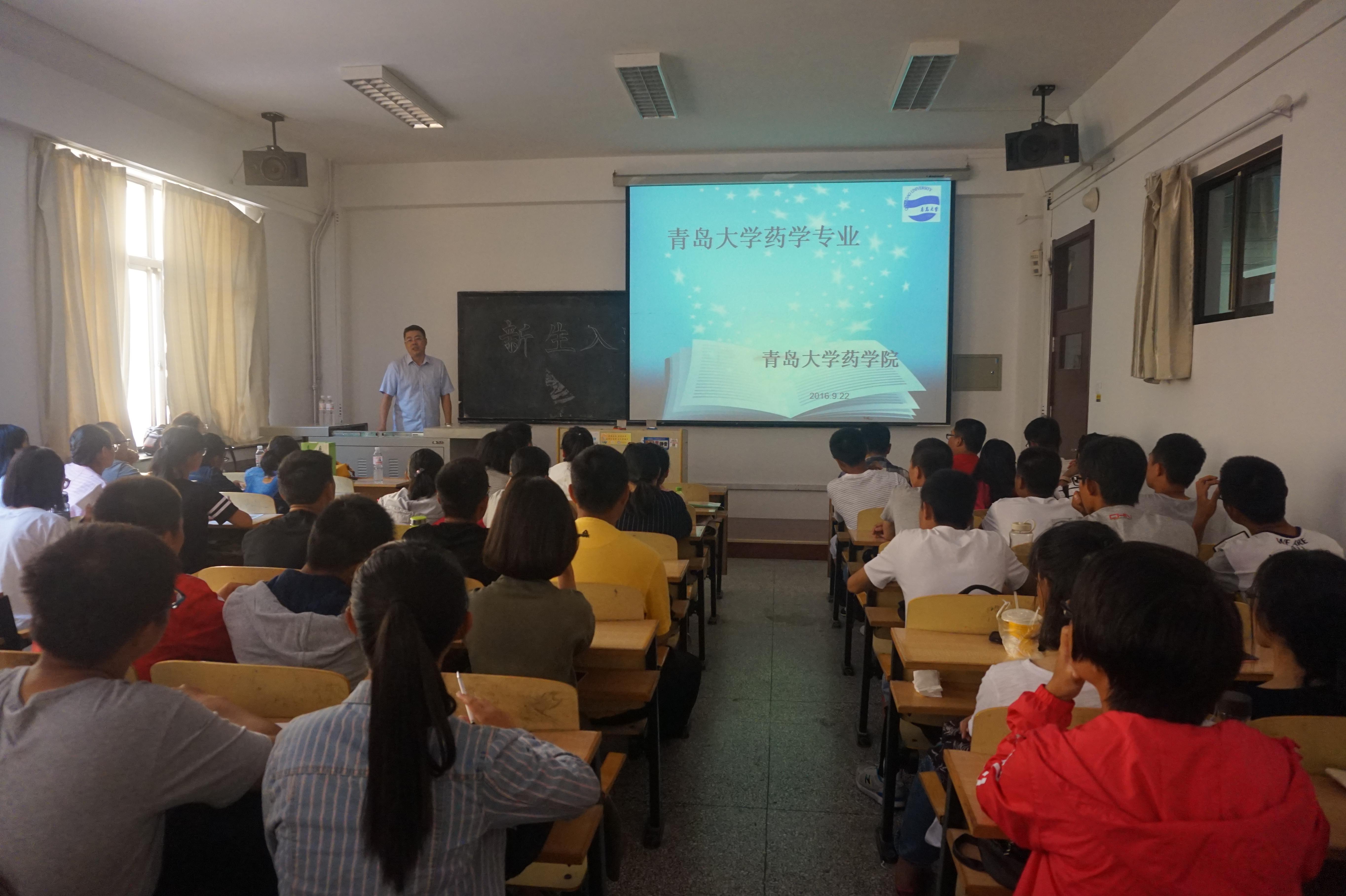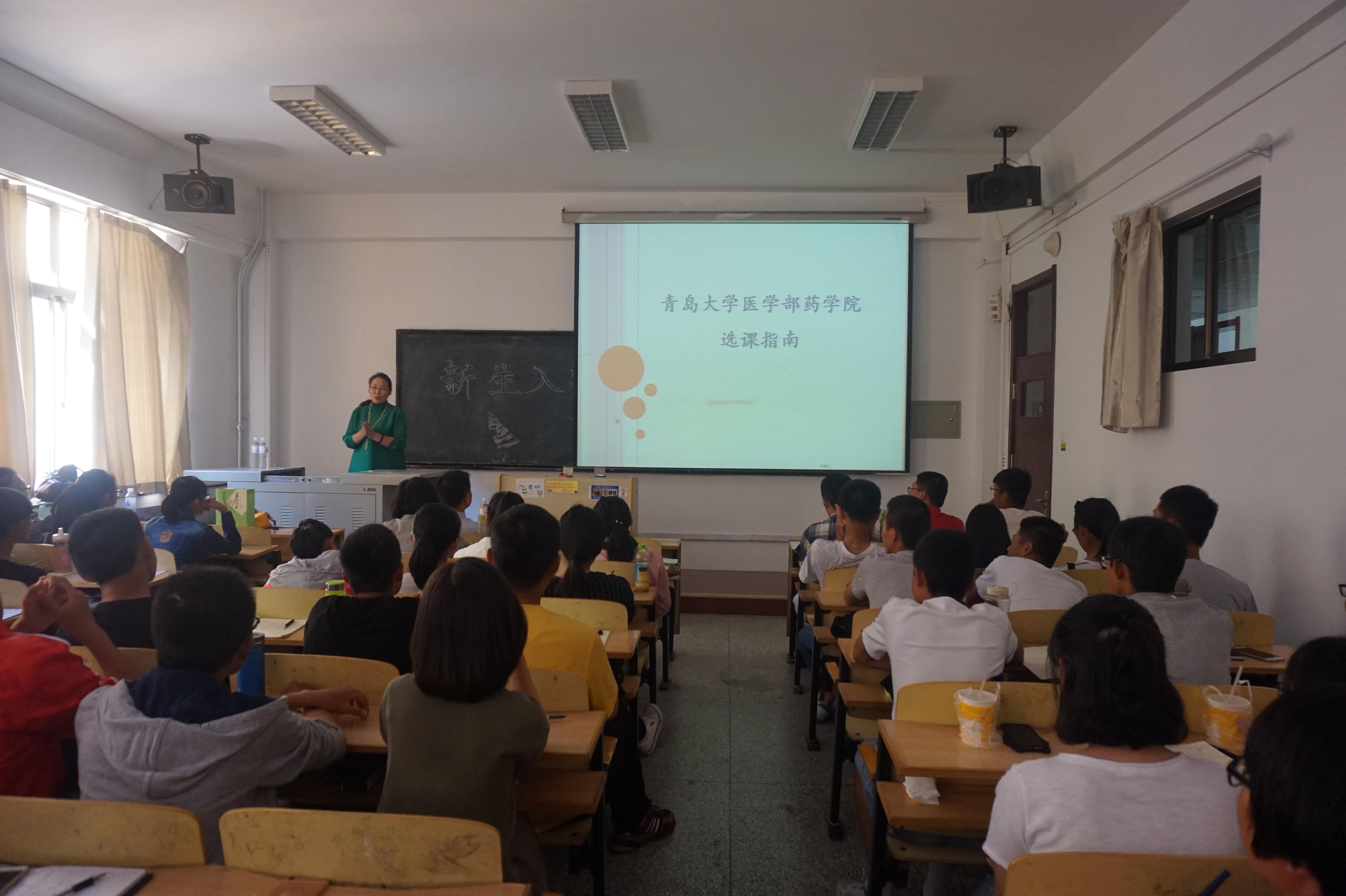 的发展历史、知名专家教授及药学专业课程的设置。学院教学秘书张怡老师为新生讲解了现行的学分制。作为2016级药学专业的学业导师,张怡老师辅导新生做好选课工作。李政分享了自己多年学生管理工作的几点经验,强调了人身安全及诚信考试的两条红线。