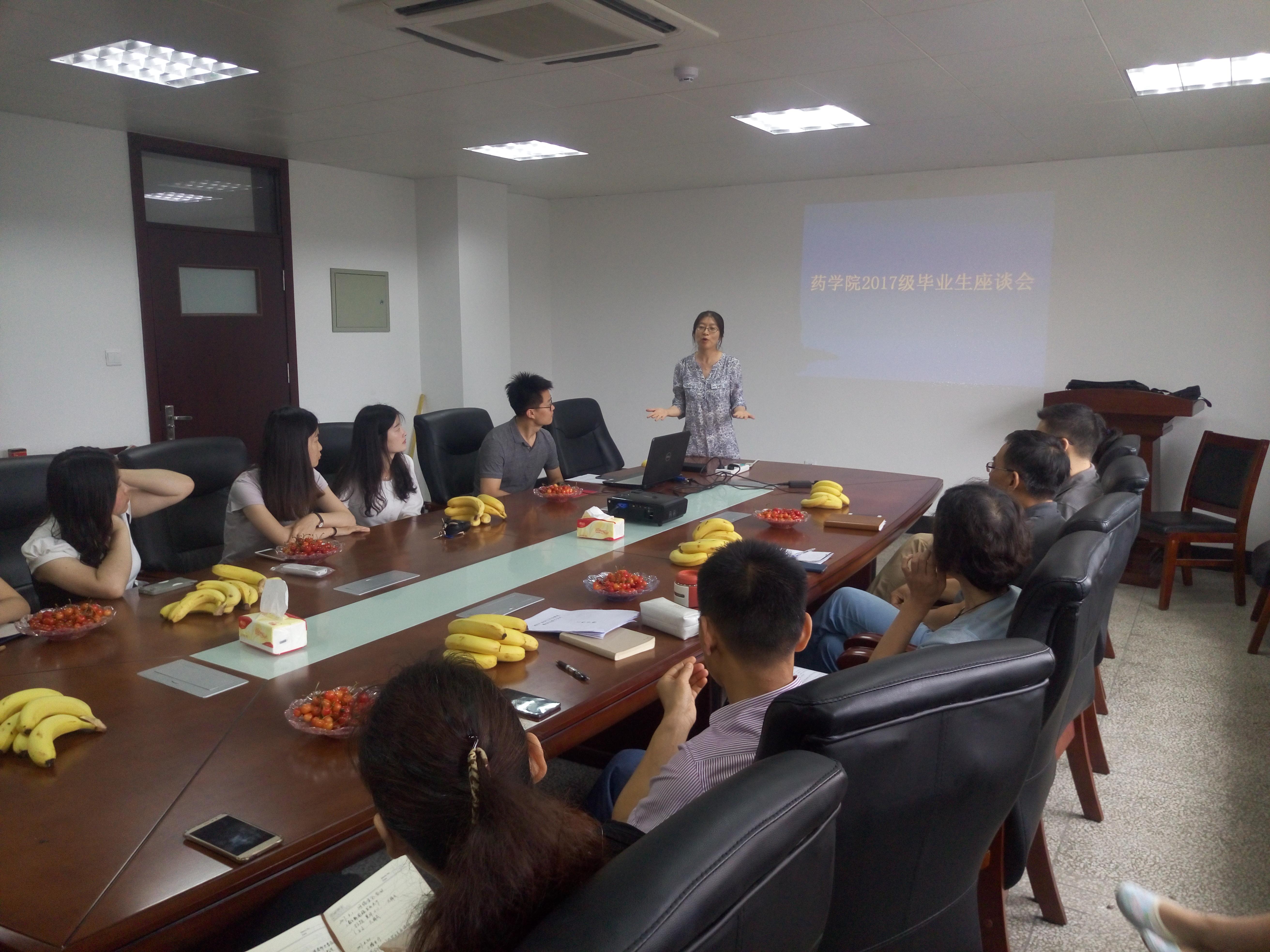 的本科教学、实验设置、实习、考研就业和研究生培养等一系列问题进行了热烈的讨论,畅谈了看法。参会老师对同学们提出的问题进行解答和回应,从不同角度阐述了自己的看法,客观地分析了医院、药企、科研院所等就业方向的利弊,帮助大家正确面对就业择业,合理规划自己的研究生生涯。最后,老师们表达了共同的期望:一是希望同学们树立远大理想,志存高远;二是希望同学们继续坚持艰苦奋斗的精神,勤能补拙;三是希望同学们对以后的生活事业做好规划,积硅步成千里;四是希望同学始终关心关注学校和学院的发展,以学院为家。