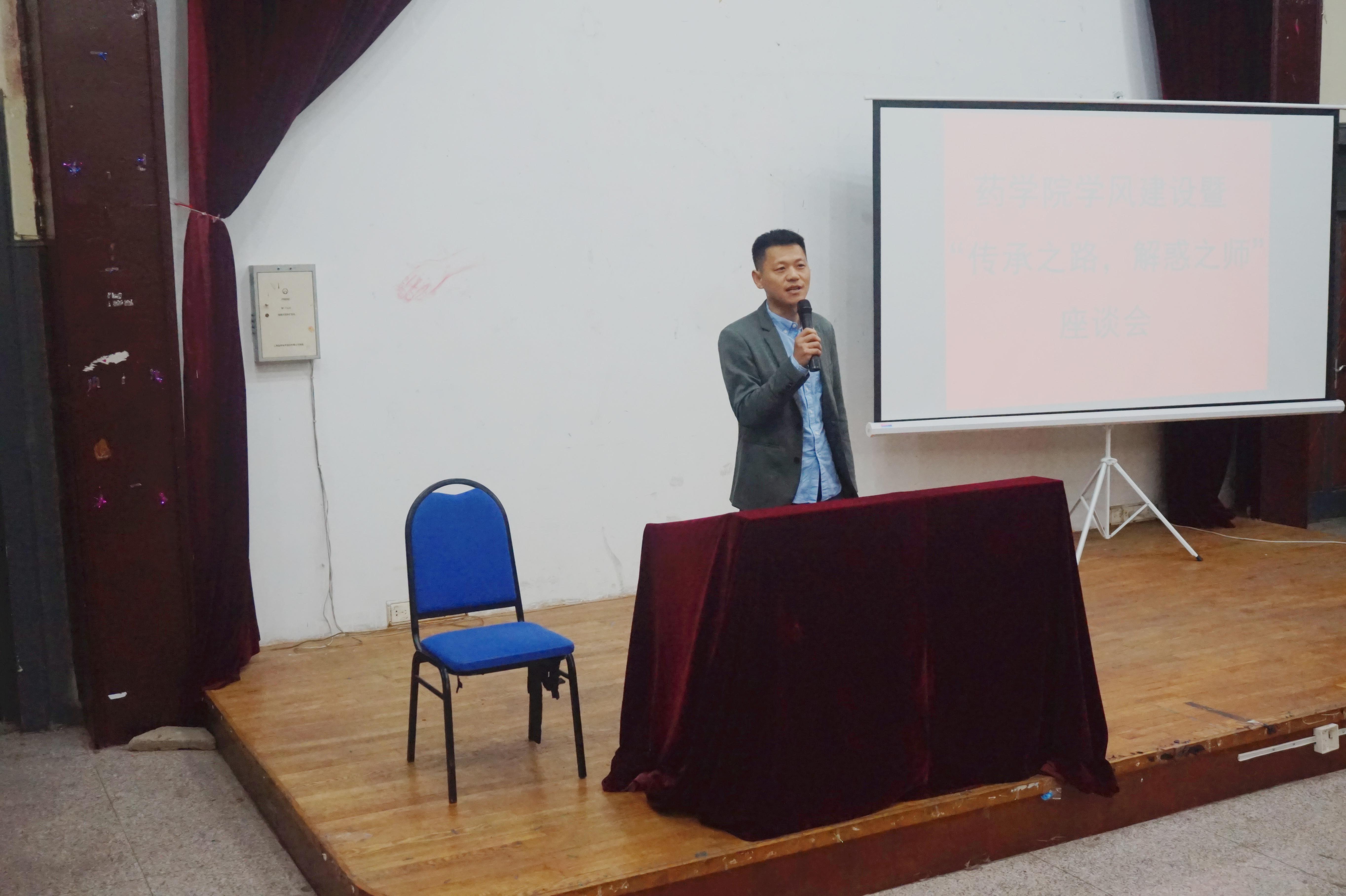 院长王克威,党委副书记李政,副院长孙勇,天然药物化学教研室主任王威,辅导员雷舒涵和一、二年级的全体本科生出席本次座谈会。
