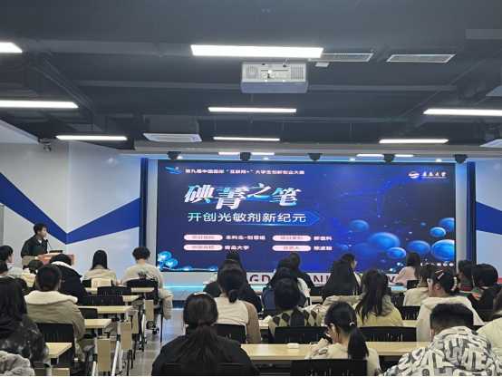 最后,“碘菁之笔”团队主讲人徐熠锋向同学们讲述了团队的备赛经历。不论是晚上十一点团队成员仍在组织模拟路演的苦,还是忙碌中抽空去小卖部带上一根雪糕的甜,都使这一份备赛经历充满意义,难以忘却。随后,他介绍了发掘项目的注意点:市场与国家战略的需求、行业的不足点、改进方法、专利意识、竞品分析及社会价值,这些都对推进项目落地十分重要。