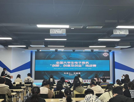 全国大学生电子商务“创新、创意、创业”挑战赛主讲人刘蔷薇同学从赛事分类、大赛流程、大赛报名、评奖评分、奖项设置五个方面详细介绍了三创赛事的注意事项,使同学们对参赛备赛流程有了充分的掌握。