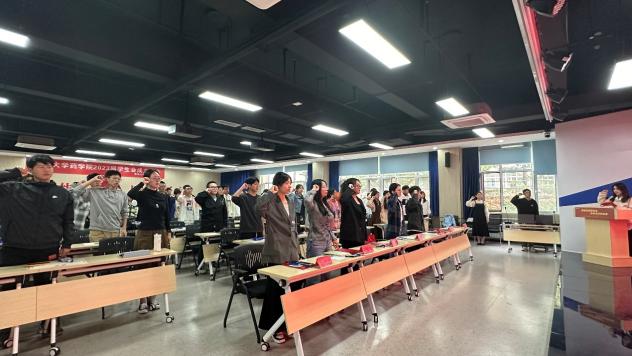 大会最后,由学生会新媒体中心主任刘畅同学带领第八届学生会全体成员宣读誓词。
