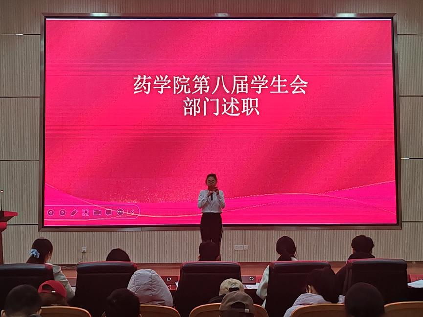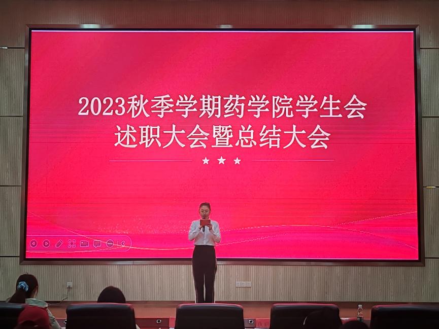 于浩园医学教育综合楼学术报告厅举办“2023年学生会述职会暨学期总结会”,学生会指导老师仇启荣、辅导员杨浩,及学生会全体成员参加,本次活动由2023级本科生刘心怡主持。