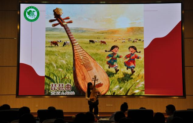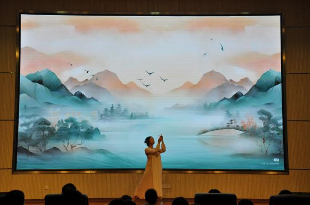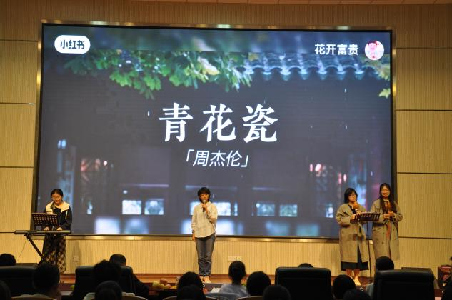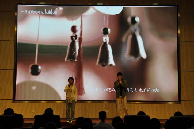 笑声过后,一首《青花瓷》,是葫芦丝等乐器与歌声的深情“对话”,迟佳雨、康鲁豫、马洪丽、刘佳坤为同学们展开水墨画般的合奏。意犹未尽之时,由刘奕柔带来的舞蹈《丽人行》翩然而来,柔美绰约的舞姿,完美再现了盛唐仕女的典雅风韵。随后是郑淋丹带来的琵琶独奏《草原小姐妹》,灵动而悠扬的琴声仿佛将同学们带到了辽阔壮美的草原。惊喜连连,“有奖竞答”环节再次袭来,大家已然蓄势待发,另一边问题难度也在“加码升级”,一攻一守间,晚会气氛毫无悬念地再次被推上了欢乐高潮。激情的抢答过后,一首《至少还有你》唱出了彼此陪伴的坚定与温暖。