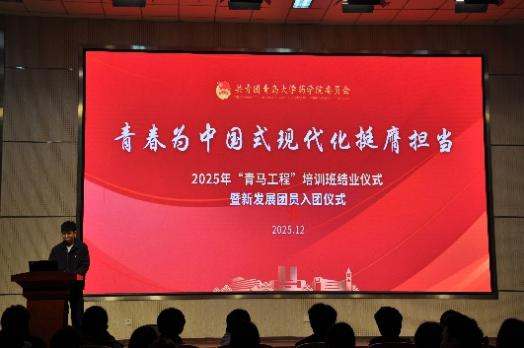 2025年12月25日,青岛大学药学院“青马工程”培训班结业仪式暨新发展团员入团仪式在浩园医学教育综合楼学术报告厅顺利举办。学院辅导员、团员青年代表、本期“青马工程”培训班全体成员参加。