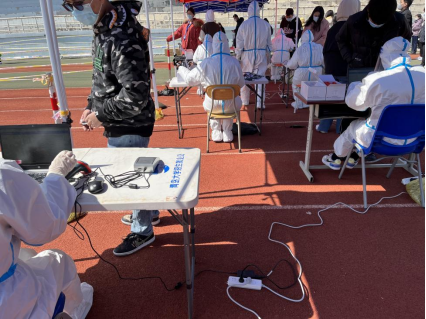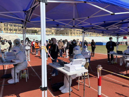 “请大家排好队,戴好口罩,保持一米间距,提前准备好身份证……”,“请张嘴”“请稍忍一下,略有不适……”维持核酸检测秩序、提醒正确佩戴口罩、进行信息采集,进行核酸采样,志愿者们无惧寒风凛冽,始终以饱满的热情投入工作。