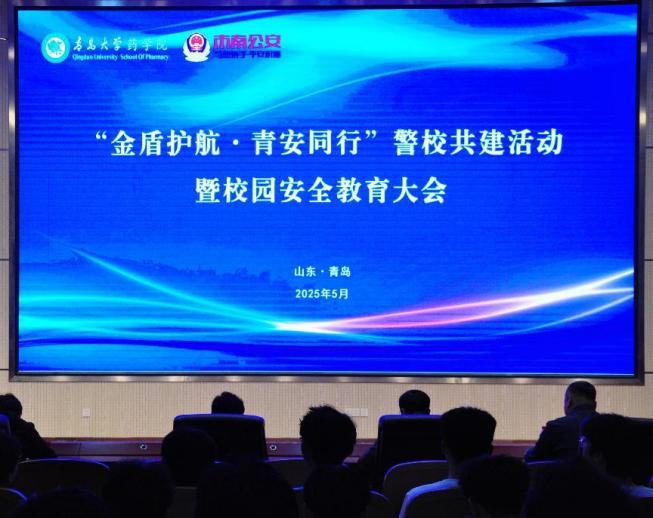 联合青岛市公安局市南分局金门路派出所举办的“金盾护航·青安同行”警校共建活动暨校园安全教育大会在医学教育综合楼学术报告厅顺利举行。本次大会旨在进一步深化警校联动机制,强化校园安全教育,提升师生的安全防范意识与应急处理能力,为校园安全筑牢防线。