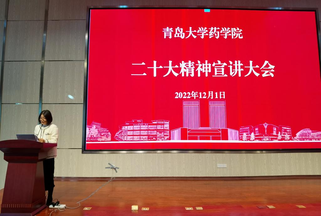 全体教职员工在浩园医学教育综合楼学术报告厅参加了学习贯彻党的二十大精神宣讲报告会,会议由学院党委副书记雷舒涵主持。
