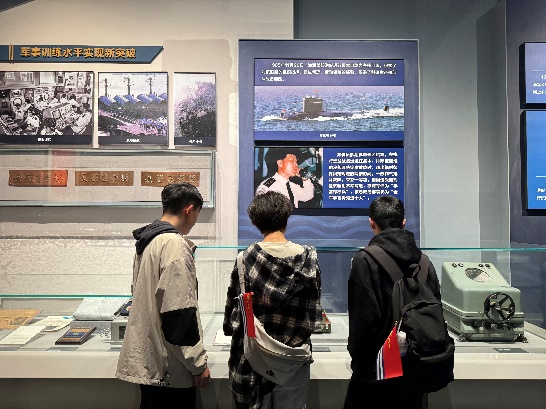 活动期间,同学们有序参观了海军博物馆的室内主展馆、室外海上展区及陆上展区。泛黄的航海日志、褪色的海军制服、锈迹斑驳的锚链等历史文物,生动展现了人民海军自创建初期突破重重困境、逐步发展壮大的光辉历程。模拟海战场景与文献资料,则生动还原了人民海军捍卫海疆主权的奋斗历史,帮助学生深刻认识海军在维护海洋权益中的战略意义。