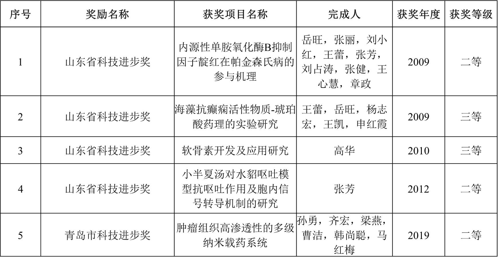 主要科研奖励