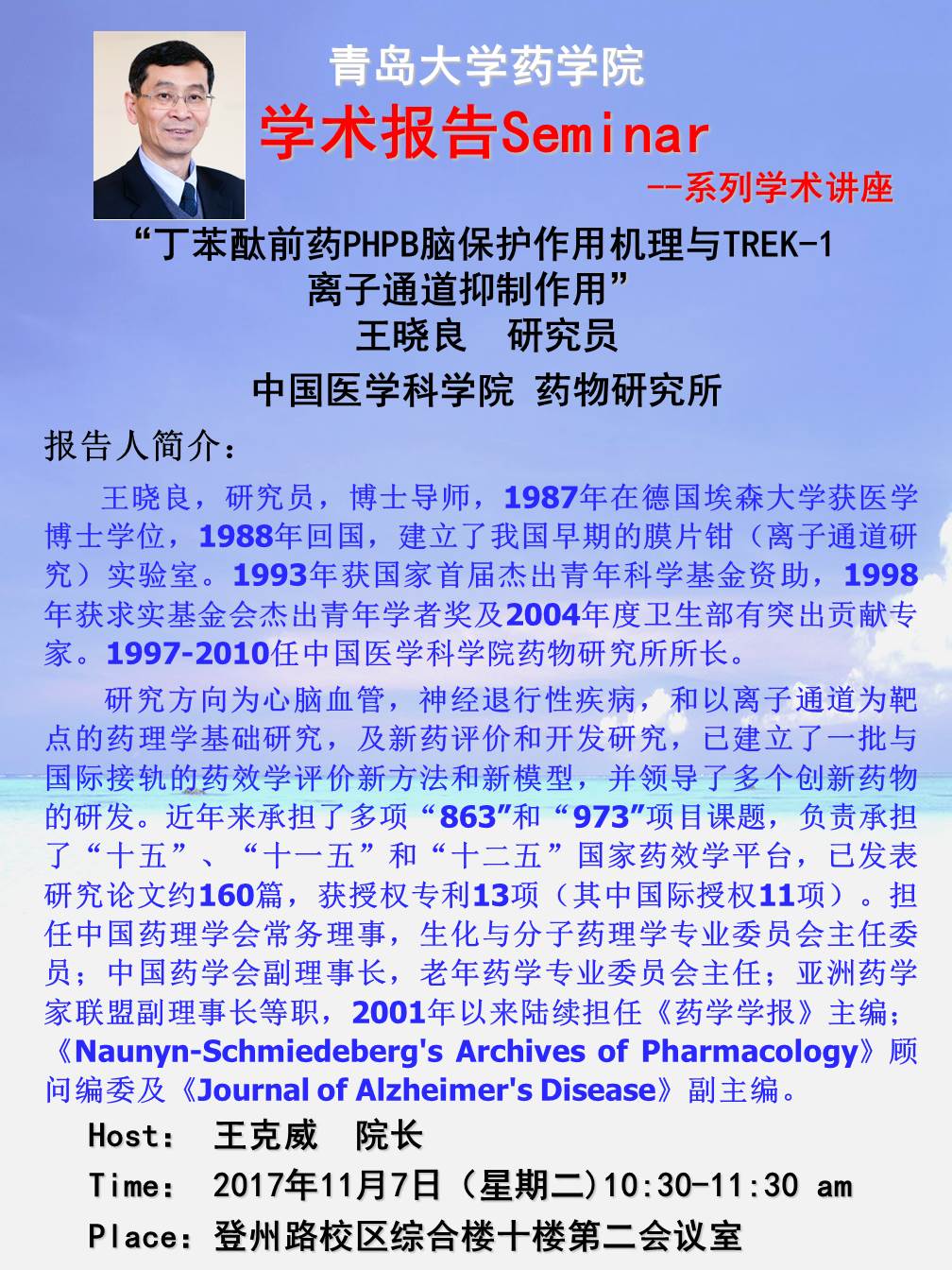 上一条:11月7日中国医学科学院药物研究所王晓良研究员来台湾a片 学术交流 下一条:美国范德堡大学白明峰博士来台湾a片 进行学术讲座
