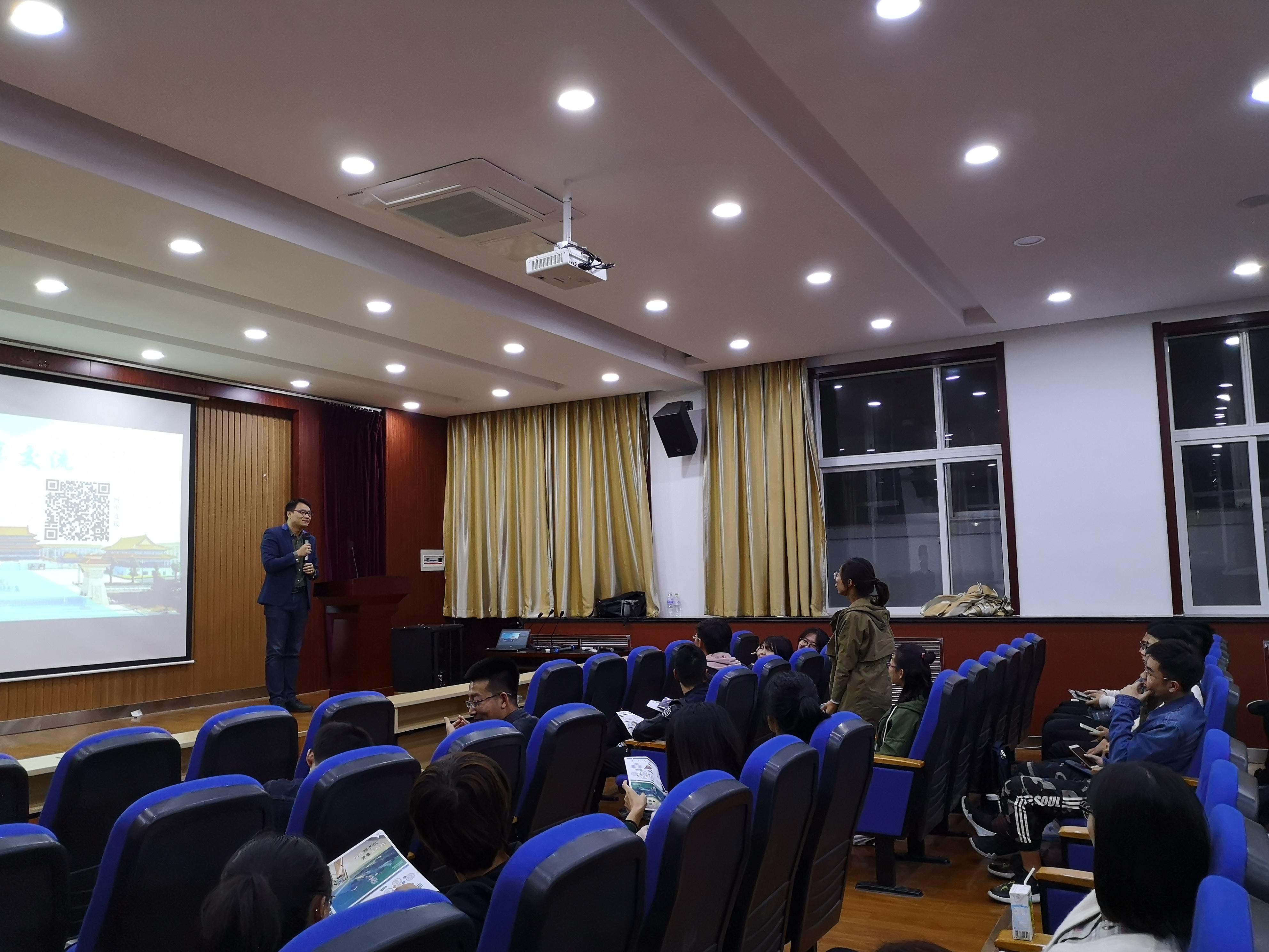 随后,宣讲会的工作人员向同学们全方位介绍了公司的发展历程、品牌文化、产品及销售、人才培养以及员工福利等内容。在座的同学们都被公司完善的人才培养体系和职业发展通道所吸引。在宣讲会答疑环节中,同学们积极踊跃,提出了关于岗位、发展、福利待遇等相关问题,公司的宣讲人员对大家的问题进行了耐心的解答。