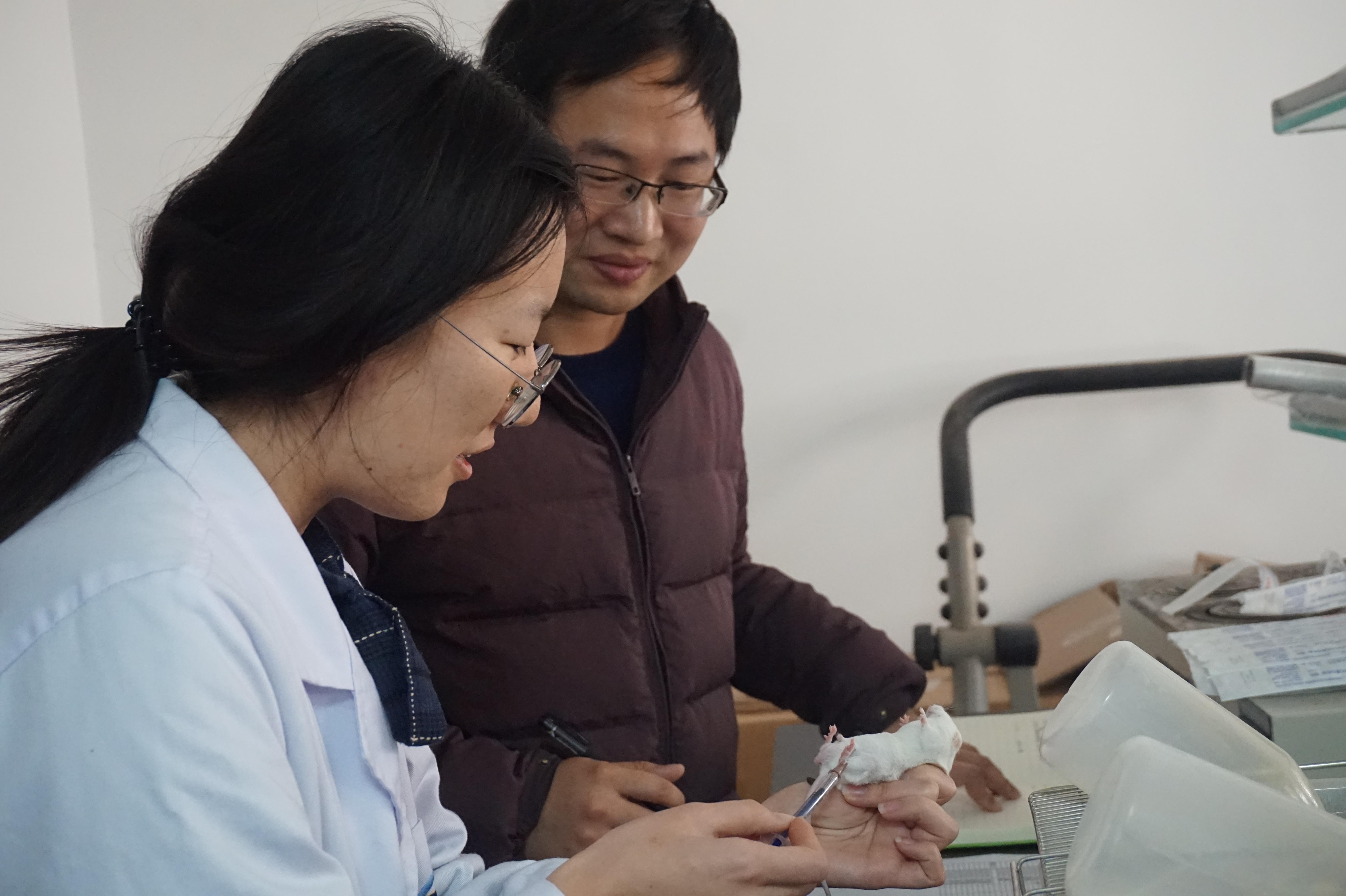 复赛形式为实验操作,考察学生药理实验、药物化学实验和仪器分析实验的实操技能。药理实验是小鼠的腹腔注射,家兔的耳缘静脉注射和灌胃;药物化学实验为酸碱滴定法计算氢氧化钠溶液中氢氧化钠的含量;仪器分析实验为紫外分光光度法测定异烟肼水溶液中的异烟肼含量实验。指导老师根据同学们现场的实验操作表现进行打分。