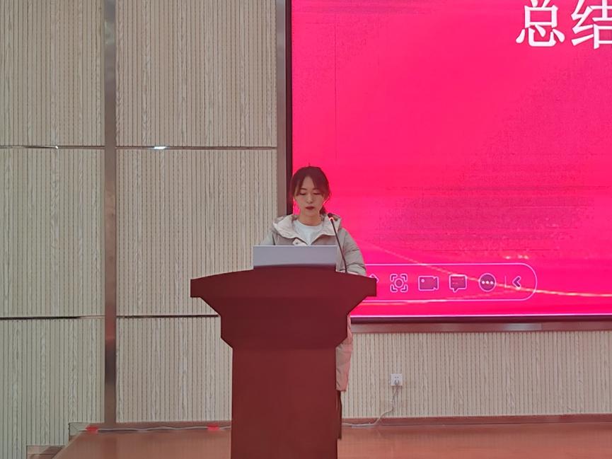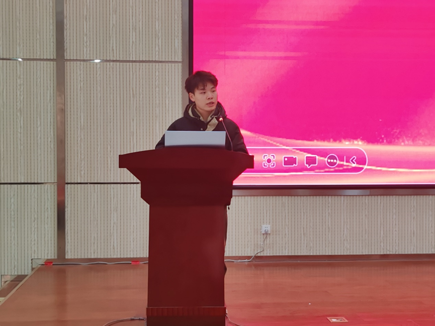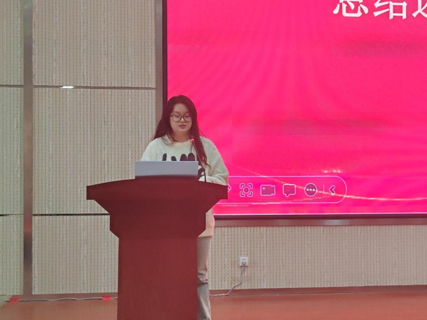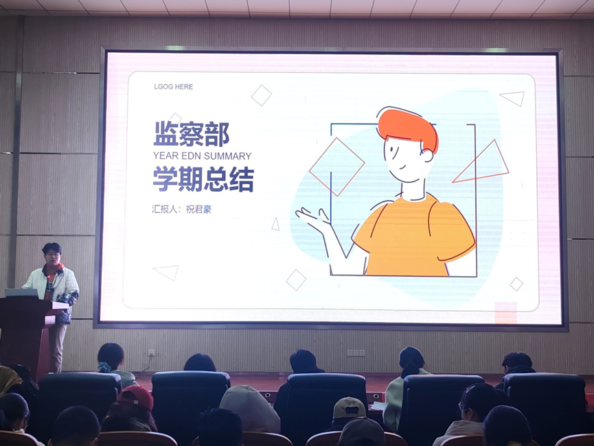 学生会主席徐熠锋总结学生会工作。他对学生会成员一个学期以来的的辛勤付出表示肯定,并鼓励大家在未来的工作中继续发扬团结协作、勇攀高峰的精神,为学生会的发展贡献更多的力量。
