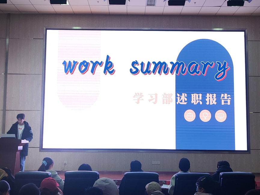 在述职环节,各部门负责人依次上台,详细汇报了本部门在2023年秋季学期的工作情况,介绍了部门的主要活动、取得的成绩以及面临的挑战,并分享了宝贵的工作经验。