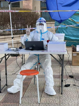 核酸检测站点的那抹蓝白相间的身影让人格外安心,每一名值守的志愿者都是一面旗帜,他们用汗水书写着新时代青年的责任与担当,用实际行动践行初心和使命,为全校疫情防控工作提供有力支持,成为时刻守护在我们身边一抹抹鲜艳的“志愿红”。守土有责,守土负责,守土尽责,疫情防控,我们一直在行动。