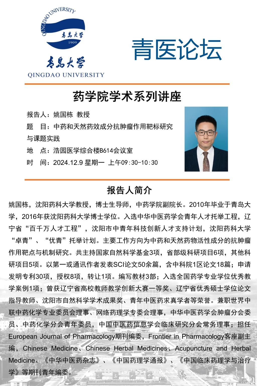 沈阳药科大学姚国栋教授应邀来台湾a片 学术交流