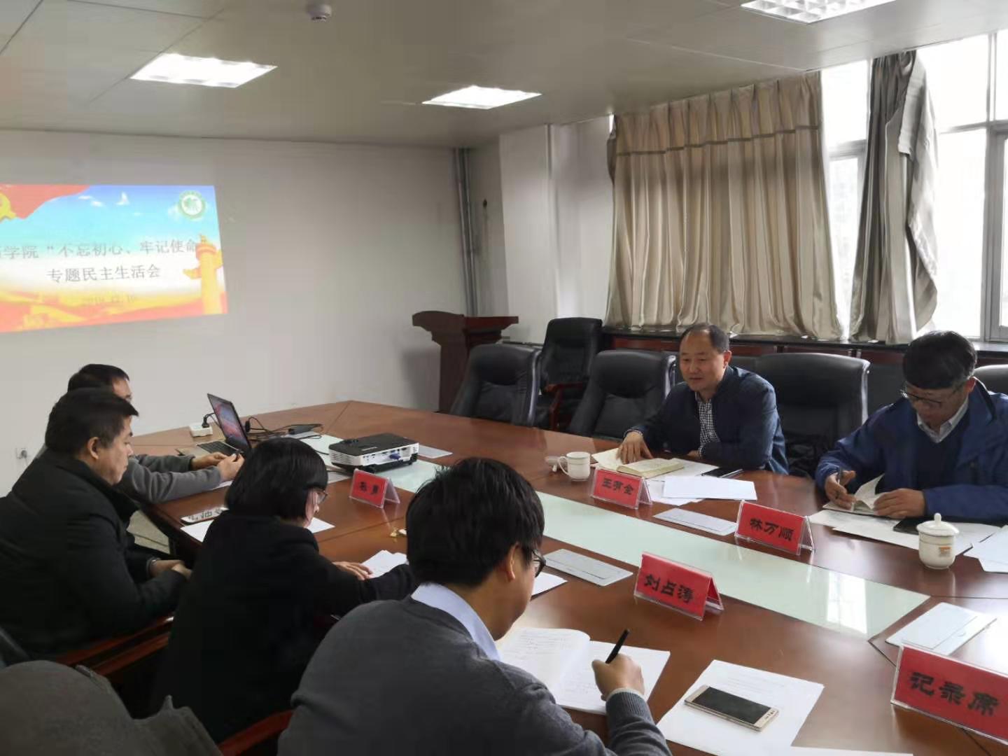 党委“不忘初心、牢记使命”专题民主生活会在松山校区综合楼三楼会议室举行。党委副书记李延霞主持会议,学院党委班子成员参加会议。医学部党工委常务副书记王有全,校主题教育第五指导组成员、纪律监察室主任、监察室副主任林万顺全程参会指导。
