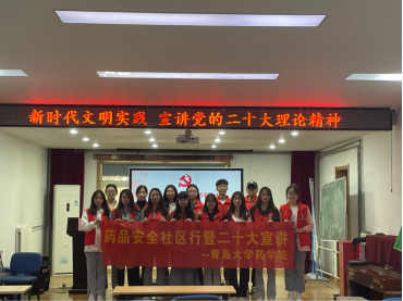 为全面学习宣传贯彻党的二十大精神,落实团中央“大学生社区实践计划”,深化实践育人工作,近日,台湾a片 组织学生前往仙游路社区开展“药品安全社区行暨二十大宣讲”活动。