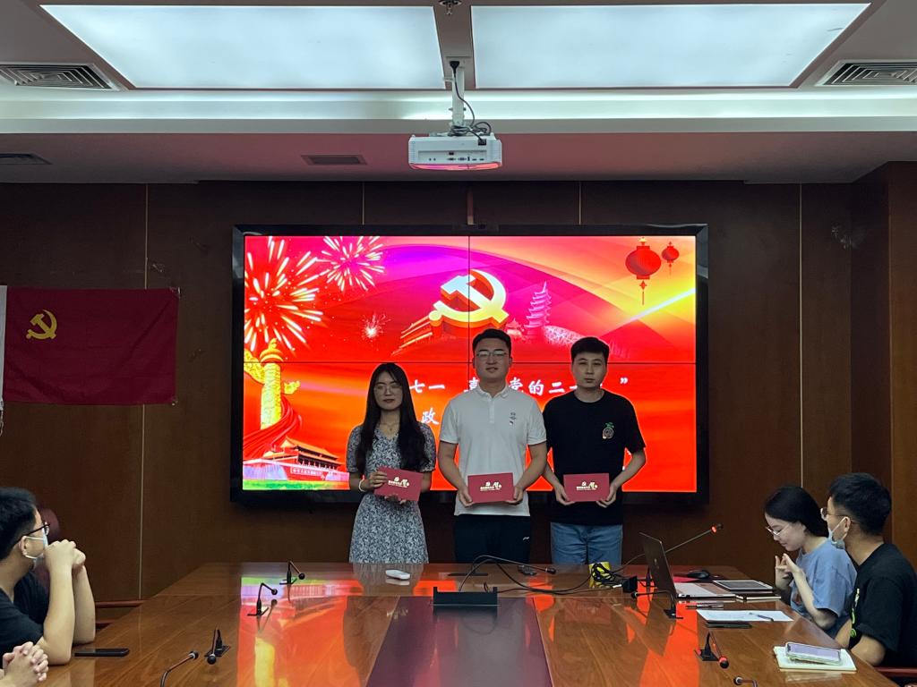 会议伊始,全体党员面向党旗重温了入党誓词,随后由党支部副书记逄淑德为过“政治生日”的3名党员颁发贺卡。生日会上,刘蕾、李志鹏、曾现虎3名学生党员作为分享者,从不同角度讲述了自己入党的初心,阐述入党以来的故事和深刻感受,并结合未来努力方向许下“政治生日愿望”,展示了共产党员的不忘初心、勇于担当。
