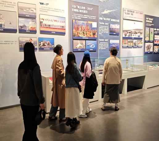 活动期间,同学们有序参观了海军博物馆的室内主展馆、室外海上展区及陆上展区。泛黄的航海日志、褪色的海军制服、锈迹斑驳的锚链等历史文物,生动展现了人民海军自创建初期突破重重困境、逐步发展壮大的光辉历程。模拟海战场景与文献资料,则生动还原了人民海军捍卫海疆主权的奋斗历史,帮助学生深刻认识海军在维护海洋权益中的战略意义。